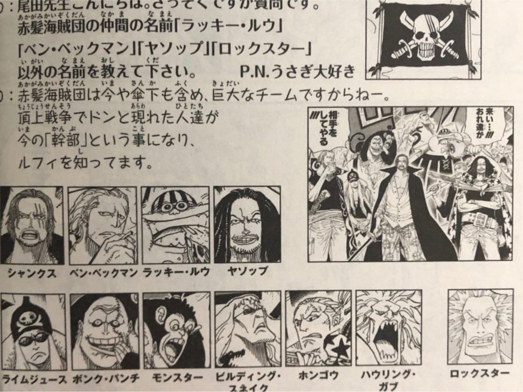 【ワンピース速報】最新刊で赤髪海賊団メンバー全員の名前が判明ッッ!!!
