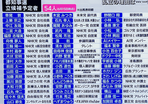 NHKから国民を守る党、都知事選に大量の立候補者を乱立させる