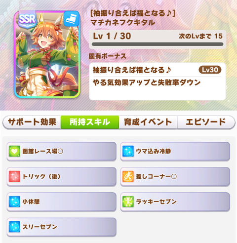 【ウマ娘】フクキタルSSRはスピードだが体力消費と失敗率の軽減が付いた新しいタイプのサポカ!そして金スキルはスーパーラッキーセブン!!