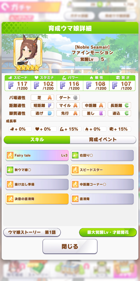 【ウマ娘】ファインモーションは秋右覚醒持ちの後半速度アップ固有!秋チャンミで人権になる?!