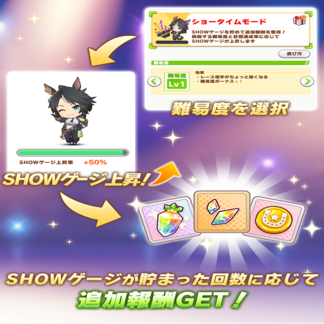 【ウマ娘】ショータイムの報酬に虹結晶確認!ただしレベルを上げるごとにココングラッセが鬼畜化する!?