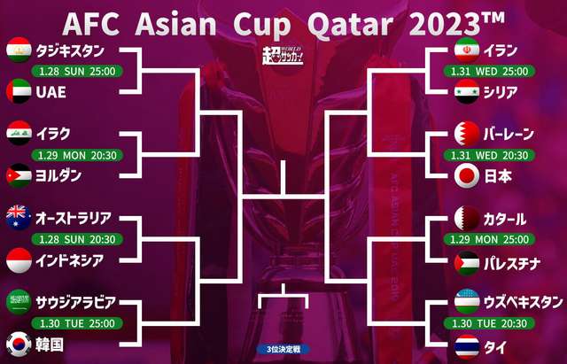 アジアカップ決勝トーナメント進出16チームが決定!気になる対戦カードは…
