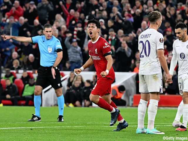 遠藤航が加入後初ゴール!リヴァプール、ホームでトゥールーズに5発大勝で3連勝 ELグループE第3節