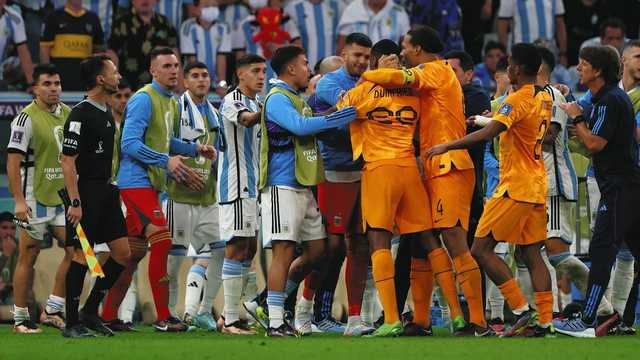 相手ベンチにボールを蹴り込むプレーが引き金に…アルゼンチン×オランダで一触即発シーン【カタールW杯】