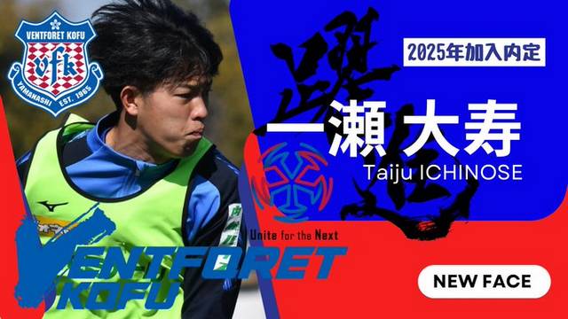 【ヴァンフォーレ甲府】山梨学院大学DF一瀬大寿の25年加入内定を発表