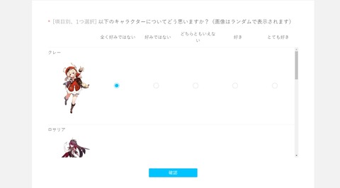 【原神】キャラクターについてのアンケート何書いた?
