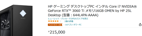 【原神】AmazonでOmen25L 3060Tiが15%オフの18万円台で買えるぞ急げ!!