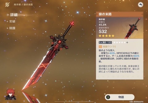 【原神】いまだに末路を超える性能の両手剣ってないよな