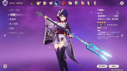 【原神】雷電って漁獲で十分?やっぱ草薙いる?