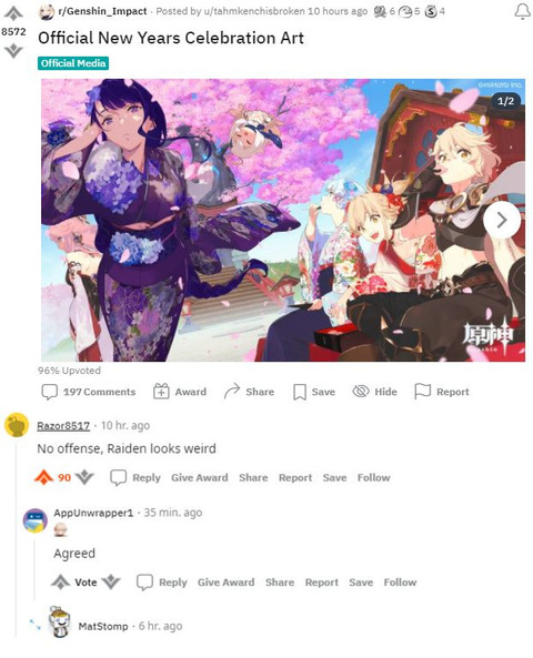 【原神】やっぱり英語でも新年絵の雷電はおかしいって言われてるなw