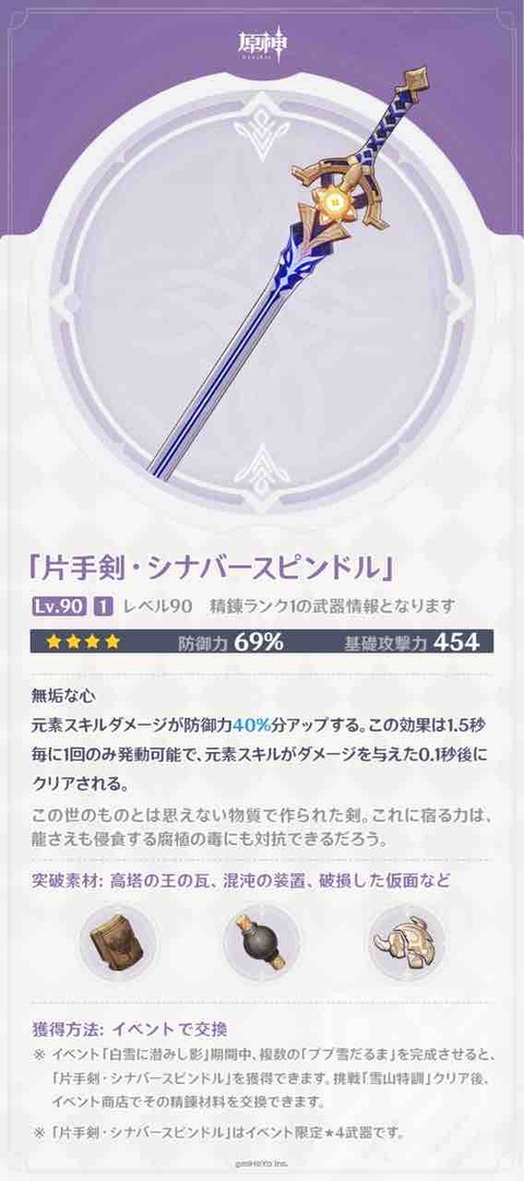【原神】新片手剣、新聖遺物の詳細が判明!!