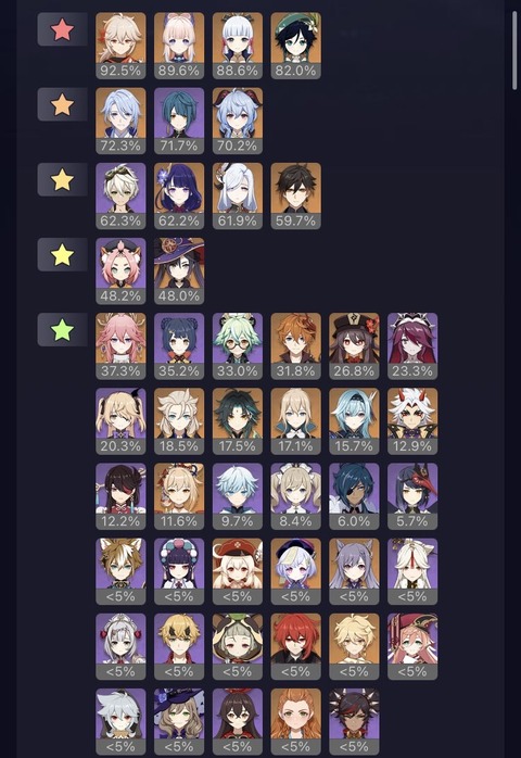 【原神】ここみ綾人行秋モナがこの使用率なのにイェランの入る隙間あるの?