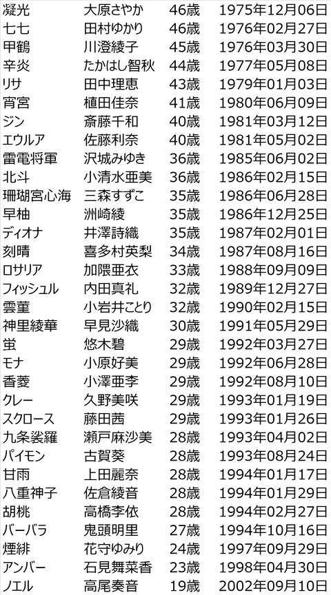 【原神】こちらが女性声優の年齢一覧です