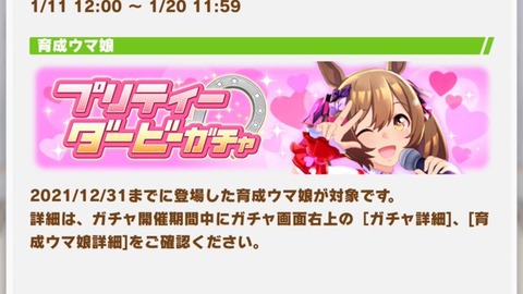 【ウマ娘】1/11(火)、プリティーダービーガチャとサポートカードガチャが開催予定!