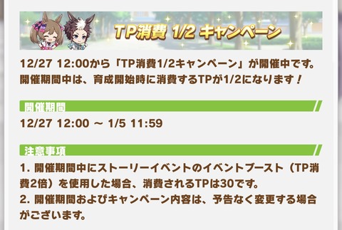 【ウマ娘】TP消費1/2キャンペーンってこれいる?