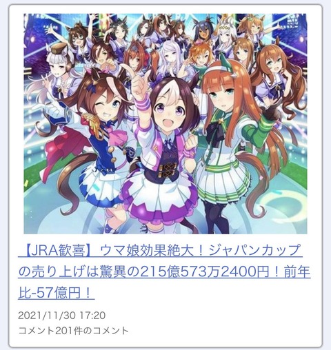 【朗報】ジャパンカップさん、ウマ娘効果で脅威の売り上げを叩き出してしまう!