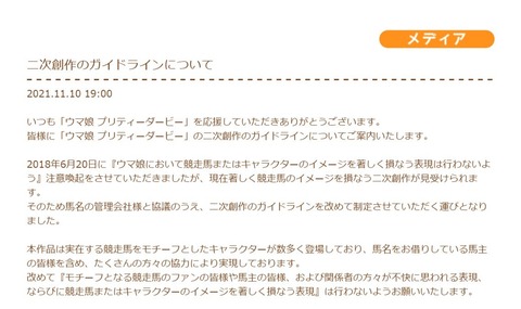 ウマ娘がこのタイミングで改めて2次創作のガイドラインを出して来た理由って