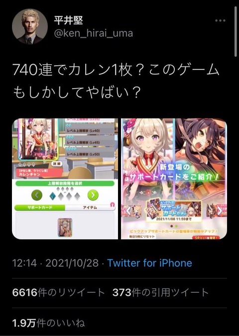 【悲報】平井堅、ウマ娘740連ガチャ爆死する