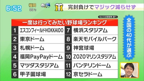 【画像】『一度は行ってみたい野球場』ランキング、発表される アクセス・球場飯は?【ここちょっと】