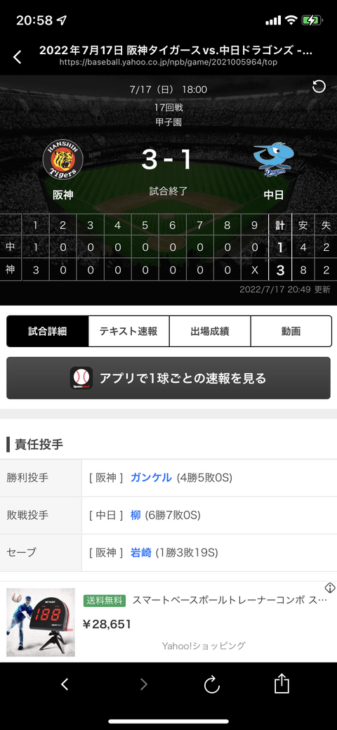 【柳裕也で負け】阪神vs中日 ドラゴンズはガンケル打てず、頭上には巨人【根尾昂顔見せ登板】