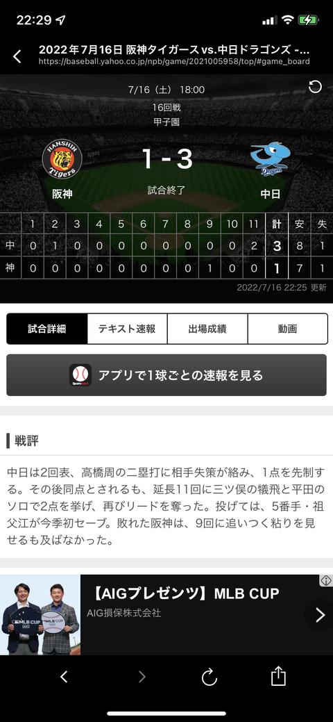 【終盤実況】中日VS阪神 ドラゴンズ延長の末三ツ俣犠飛と平田良介のホームランで勝ち越し!甲子園今季初勝利