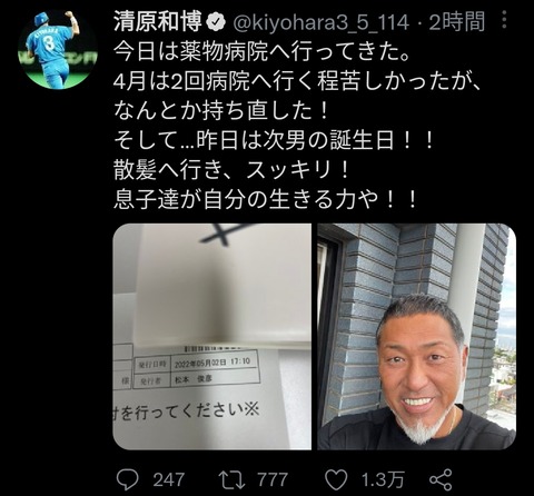 【朗報】清原和博さん、調子良さそう【祈願・薬物克服】