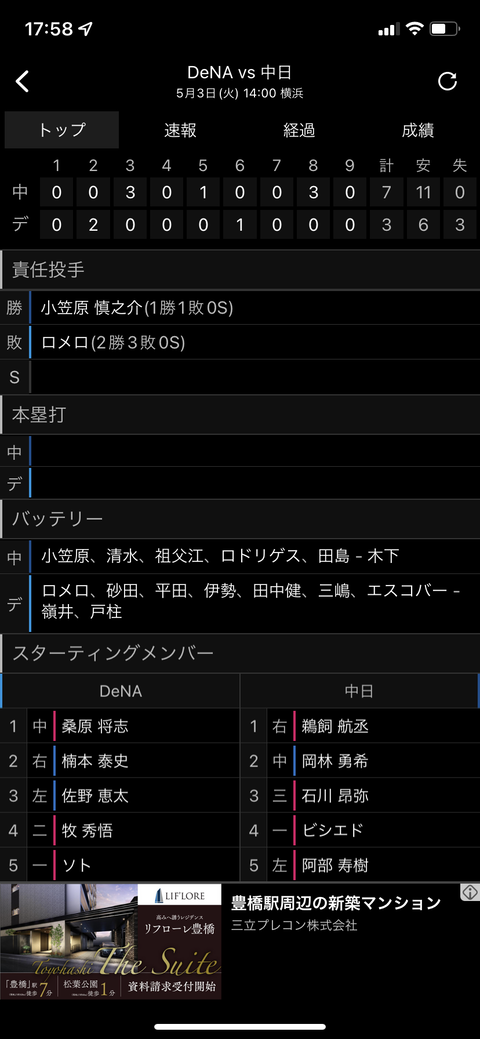 【5/3】実況・横浜DeNAベイスターズ-中日ドラゴンズ 小笠原慎之介、復帰登板も先制許す【打線奮起を】