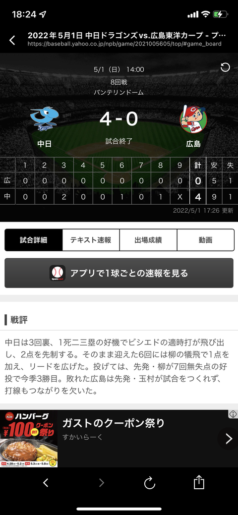 【球数問題】中日・柳裕也さん、昨日も元気に131球【酷使?中継ぎ信頼度?】