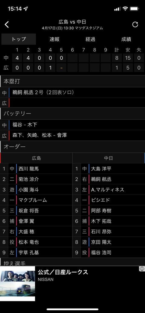 【ズムスタ】中日ドラゴンズ カープ相手に打線爆発!鵜飼2号アーチ!【先発全員安打で2イニング8点】