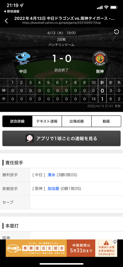 【最後は大島さんがプロの一打】中日、阪神と延長10回裏の死闘の末サヨナラ勝ち!予祝に勝つ!