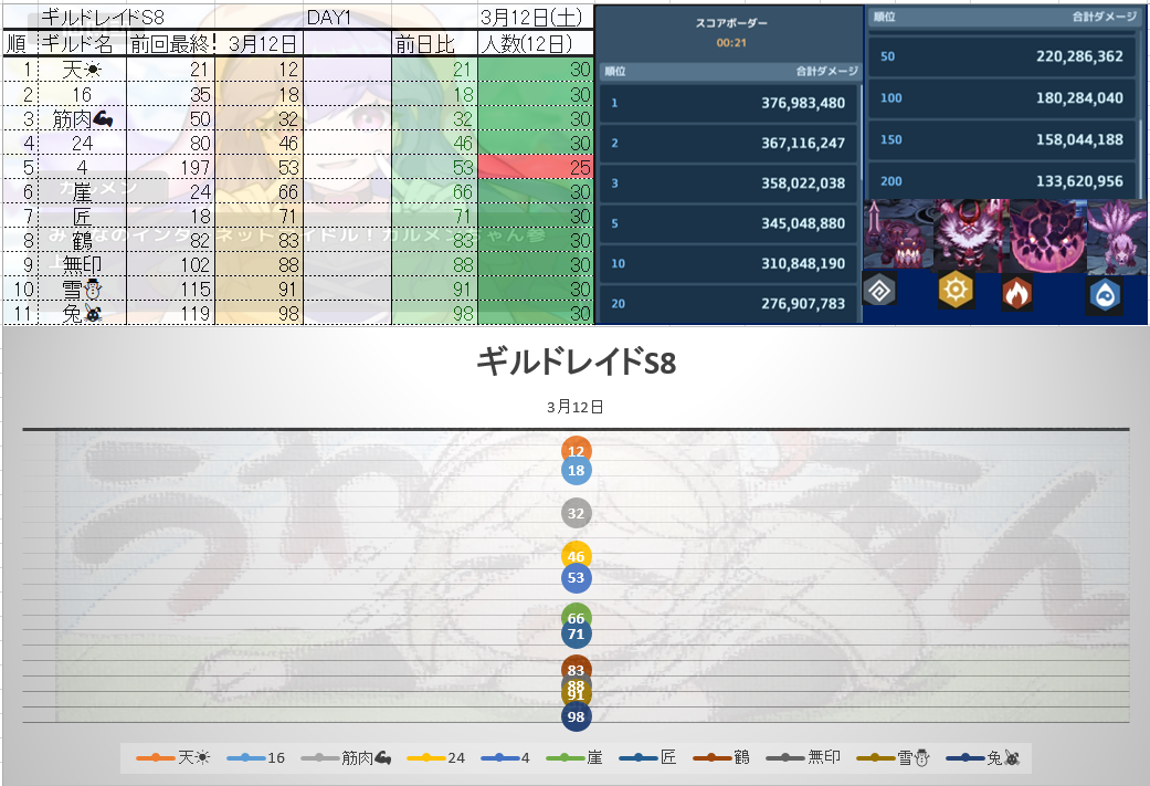 【まとめ】ギルドレイドS8DAY1集計????????なんか波乱の予感がしてるけど初日はわかりませんね????????