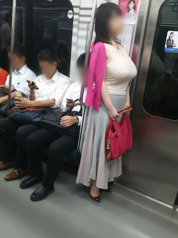 【悲報】女さん、電車内でドスケベおっぱいを強調してしまう ※画像あり
