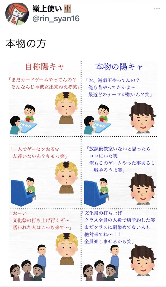 【画像】自称陽キャと真の陽キャの違いがこちらwww ←Twitterで7万いいね