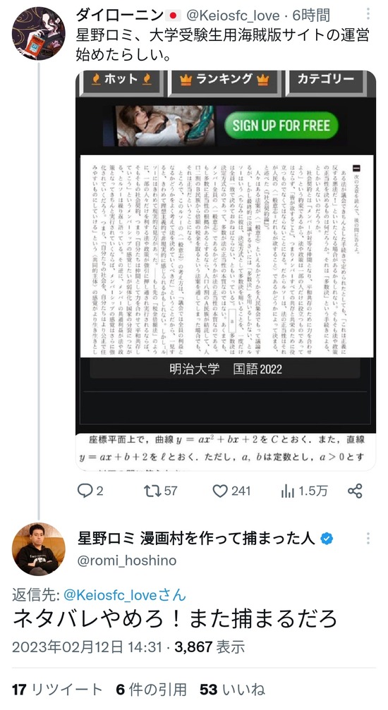 【画像】元漫画村の製作者が新たに作ったサイトwww