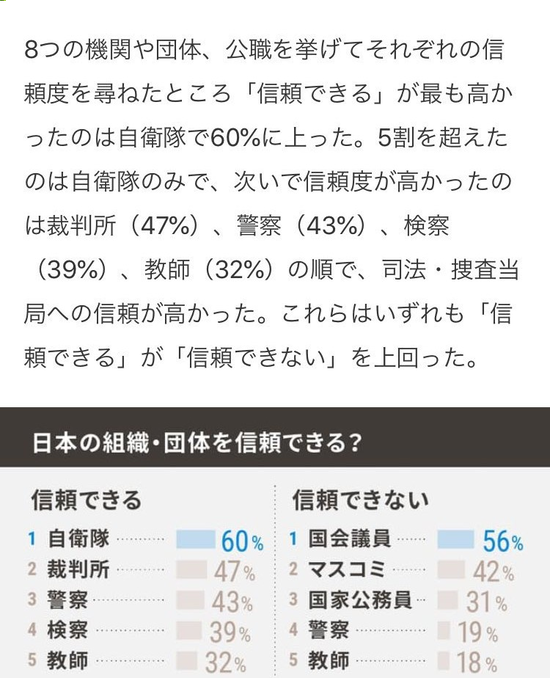 【画像】信頼できる日本の公職・組織ランキングが発表される