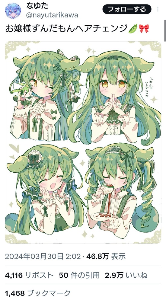 【画像】「お嬢様ずんだもん」がめちゃくちゃ流行りだしたと話題に
