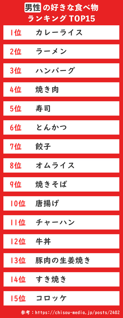 【画像】男女別の好きな食べ物ランキング、差が凄いと話題に