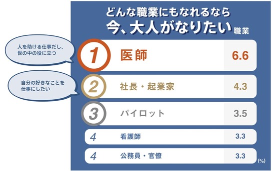 「大人が今なりたい職業ランキング」が発表される(画像)