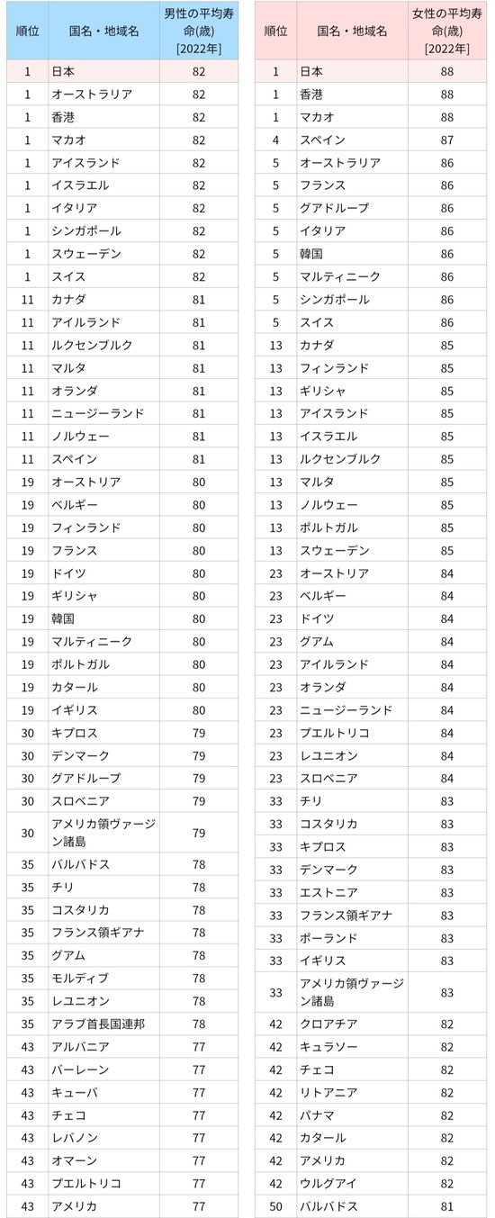 【画像】アメリカの平均寿命、ガチでヤバいと話題に。 世界の平均寿命ランキング