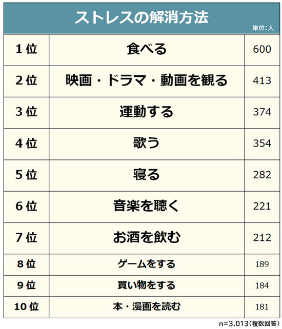 ストレス解消法の人気トップ10が発表される(画像)