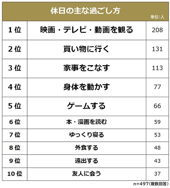独身男女に聞いた「休日の過ごし方」トップ10が決まる(画像)