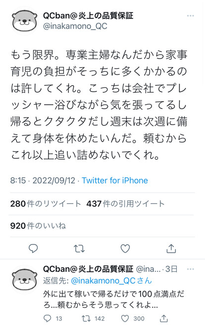夫「もう限界。専業主婦なんだから、多めに家事やってくれ」←Twitter大炎上