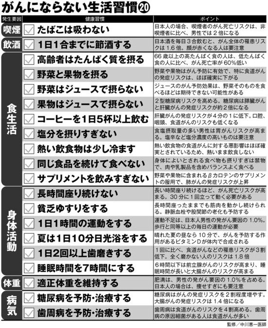 ガンにならないための生活習慣20が公開 「貧乏ゆすり」「コーヒー1日〇杯以上」など