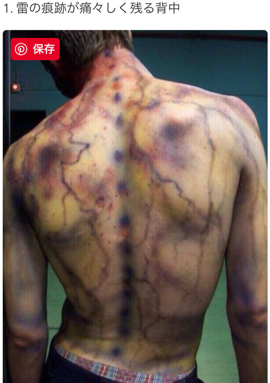 カミナリが直撃した人の身体の模様がスゴいと話題に(画像)