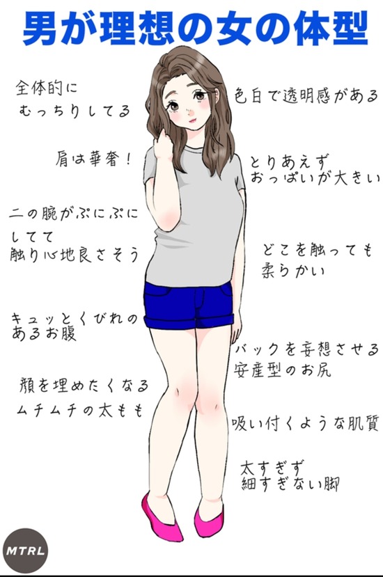 【画像】男が理想とする女性の体型がコチラ