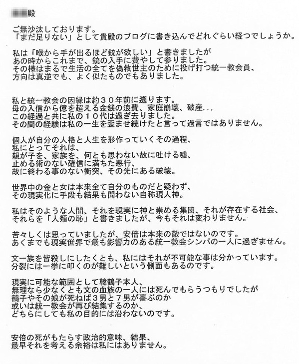 山上容疑者が事件直前に書き残した手紙がヤバいと話題に(画像)【安倍元首相銃撃事件】