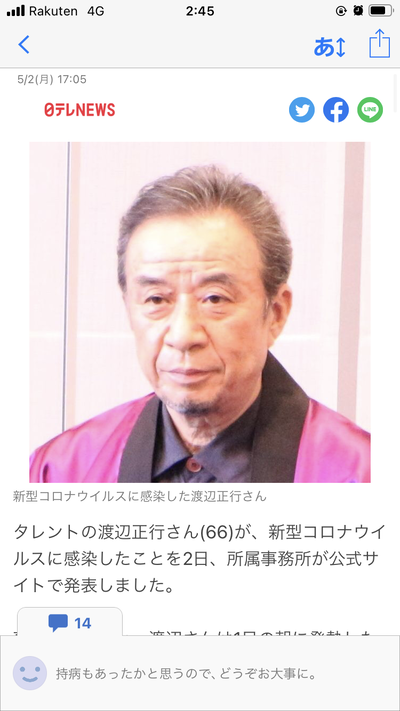 渡辺正行さんコロナに感染し、変わり果てた姿で発見される(画像)