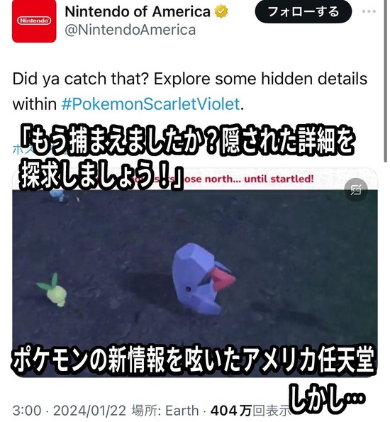【悲報】任天堂アメリカ「ポケモンの新情報、みんな喜んでくれるやろなぁ」←結果