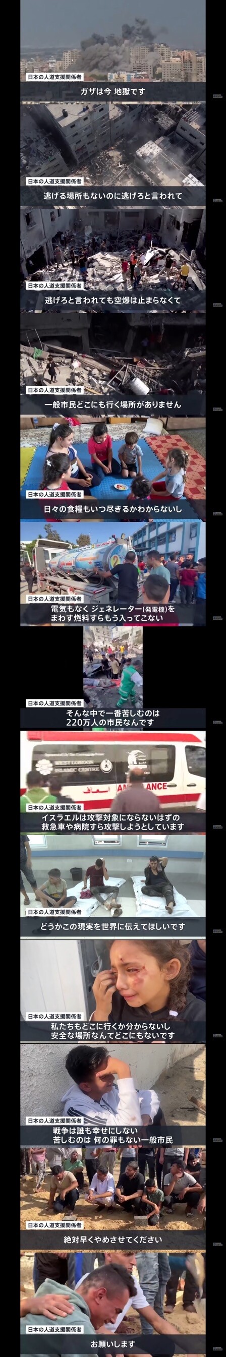 【画像】ガザで人道支援中の日本人「ガザ地区はいま地獄です!逃げろと言われても…(号泣)」