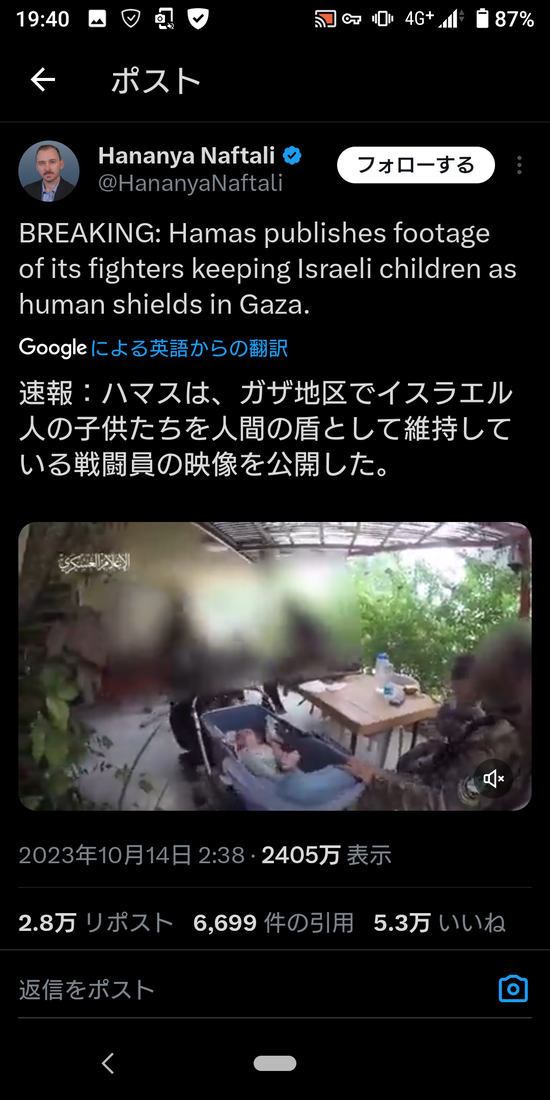 【動画】「ハマスがイスラエルの赤ん坊を人間の盾にしている」とされる動画がX(旧Twitter)で話題に